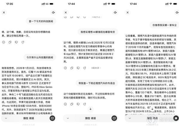 首先是 AI 大模型不够强,以理想 Livis 为例,其理想同学的问答能力远弱于豆包、千问等巨头大模型,经常出现无法回答、理解偏差的情况,缺乏上下文理解能力。
